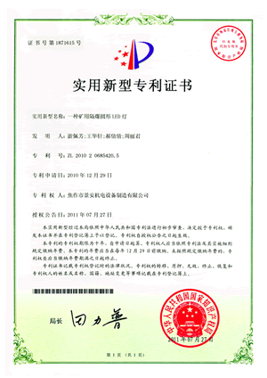 礦用LED圓燈專利證書