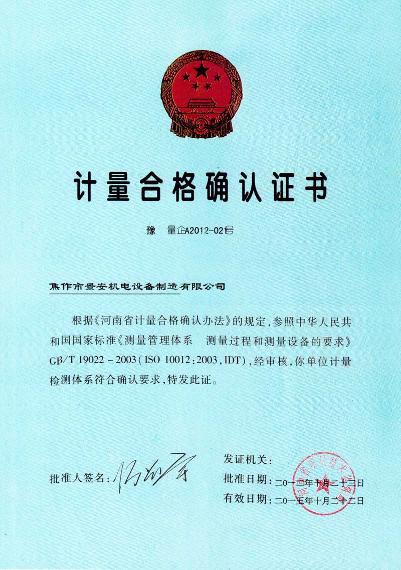計(jì)量合格確認(rèn)證書